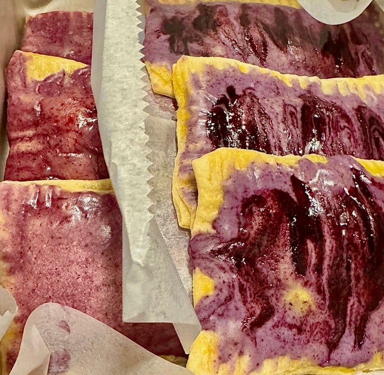 And there's the recipe! When I made these, I made strawberry and blueberry preserves, and I mixed part of the two to make a mixed berry. In the end, I didn't make enough strawberry preserves. I wish I had washed and quartered more strawberries. I had more than enough blueberry preserves, though! The strawberry glaze didn't have enough strawberry preserves, in my opinion. However, the blueberry and the mixed berry came out beautifully! So, next time I make these, I will probably double the strawberry preserves. I don't have many other takeaways from this recipe. Definitely grate the butter and make a rectangle guide to ensure all the pastries are the same size! And I would have made my glaze a tiny bit thicker. Some of the pastries had glaze running down the sides after they were dipped. And I wish I had gotten better pictures of the process of these. To be fair, I was up until about 3 or 4 that night, so I try to give myself some grace. I made sure to take note of these things in my notebook for the next time I make these. If you try these, let me know how they turned out, and if you did anything different! Subscribe and let me know! I have more flavors in the works, so keep an eye out for that! As always, thank you so much for being here and allowing me to share my recipes and stories with you! Read the fruit pastry story here! Take care of yourself, and happy baking!